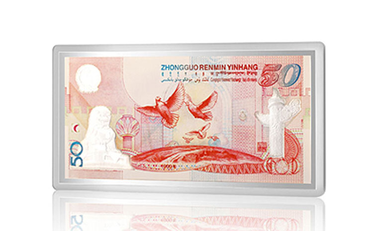 招金黃金 建國50周年紀念銀鑲金鈔50元